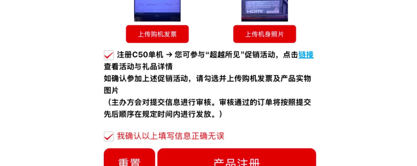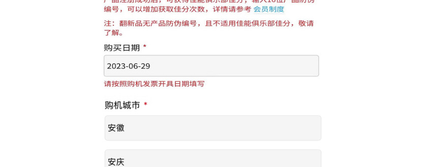 【第三步】进入页面后,输入产品序列号,匹配成功后,选择所购买的产品型号,填写产品防伪编码、产品购买渠道,购买日期等信息,并上传购机发票或收据及产品实物图片(图片中需显示清晰的购买日期及产品编号)。