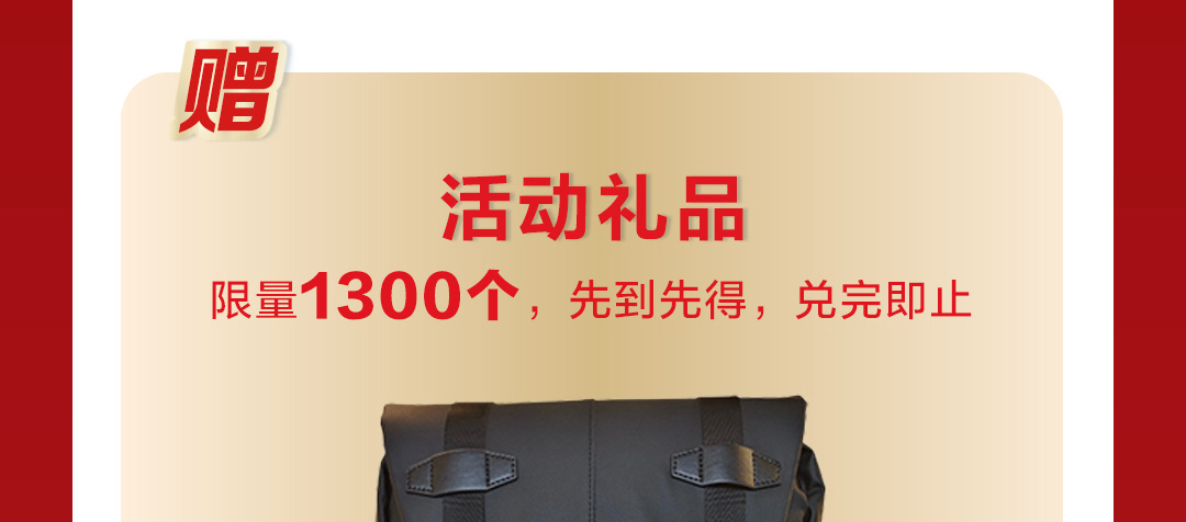 礼品数量:1300个(礼品数量有限,以通过审核的礼品兑换订单时间先后为准,先到先得,兑完即止)